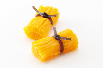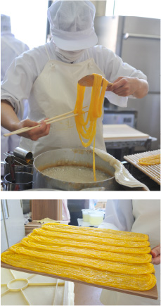 厳選の素材と伝統の製法で丁寧に一つ一つ職人が作っています。鮮やかな山吹色に玉子の風味もかすかに味わい深い素朴な甘さが遠い歴史へと想いを馳せます。